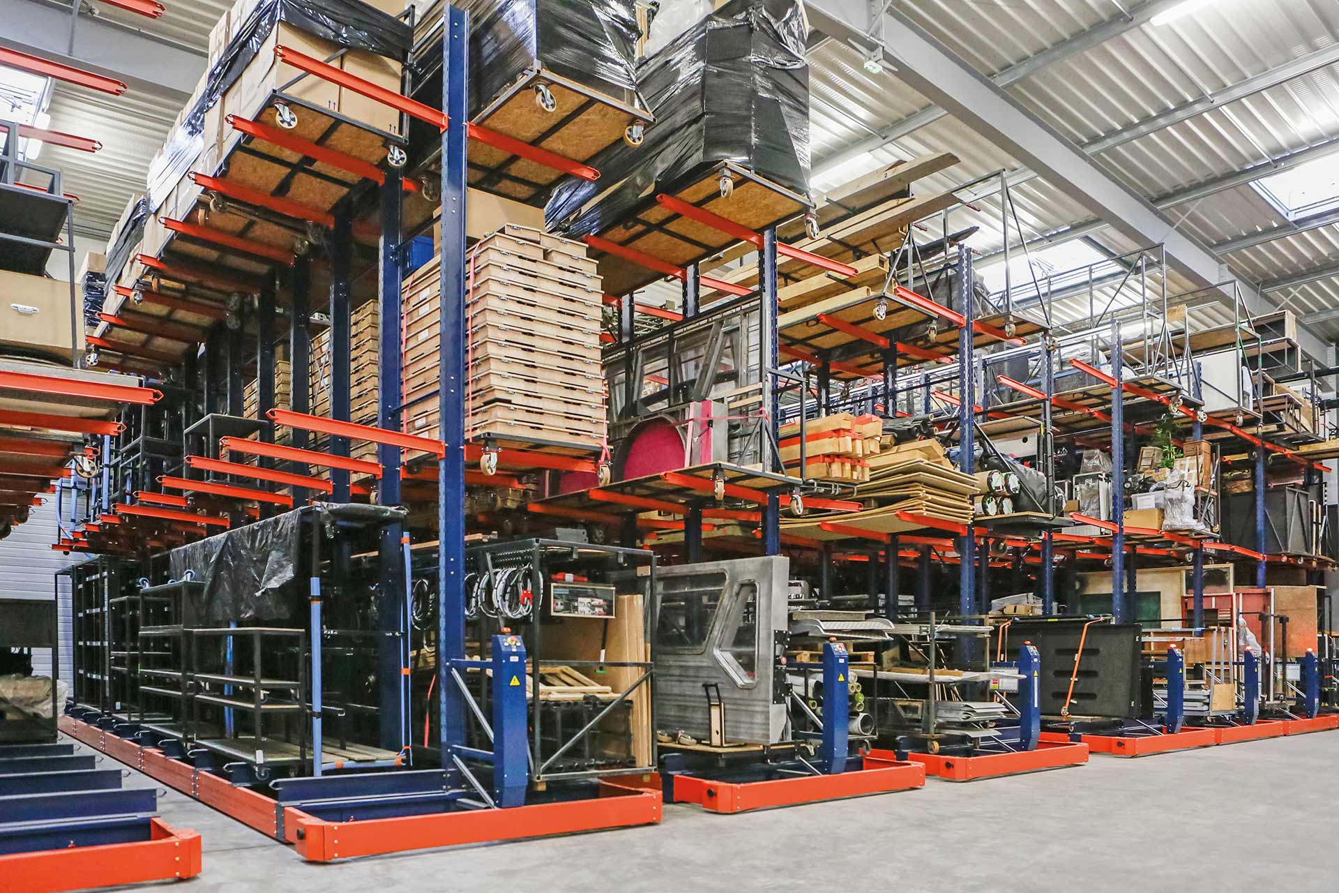 - Všestrannosť: mobilné regály možno prispôsobiť na skladovanie nepaletizovaných nákladov, ako sú zvitky, rúrky a profily.