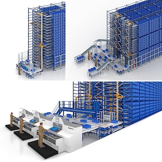 - Plno-automatizovaný systém skladovania pre krabice, prepravky a drobný tovar.